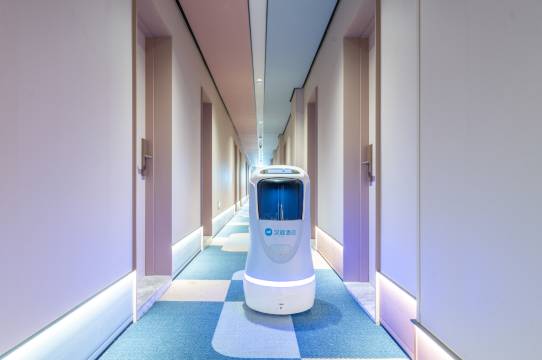 服务超好 环境也超好 外卖机器人太忙送不了 会叫专人送上来 酒店房间也会有呼叫铃 按一下就能接通前台 特别方便 酒店很干净 拍照也好看