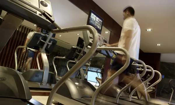 健身房在酒店的6.5层,不算特别大,但是设备还是比较齐全的,跑步机很现代智能,喜欢。