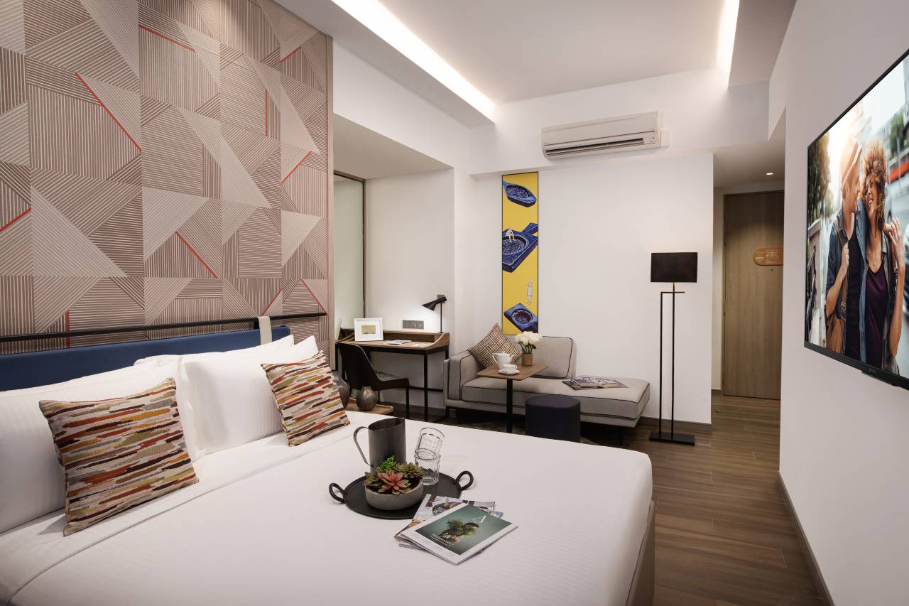 酒店处于城市的中部,环境很安逸,舒适。离最近Farrer Park地铁站大概需步行10分钟。酒店门口有公交站。从酒店门口出发往十二点方向行走10分钟有本地的生活市场,食阁的选择多样化。40平的一室一厅,加高楼层,落地大窗。感觉还是很宽敞。房间内的设施都齐全,有干湿洗衣机。五楼是前台和室外泳池,一楼有健身房