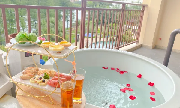 酒店由环抱着古榕树的白沙楼和茅龙楼组成,精心设计茅龙、茅君、楚云台、春阳台等新会人文特色主题温泉套房,每个温泉套房带有大露台,网红温泉缸,智能马桶,客房面积80-1100平方不等,超大舒适的度假空间。月泉湖居还配套陈皮文化体验馆、柑香馆陈皮主题餐厅、月泉汤温泉区、生态月泉岛……此外,还有尊享私家院落——钓台院,配套私家庭院、无边际泳池、温泉泡池,静养亭,白沙钓台等。酒店以纯粹的地方特色文化,期待与每一位走心的人相遇,共度一段长久回味的时光。