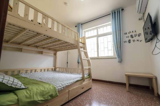 老板非常热情,我们没注意落下了小孩的衣服,打电话过去还表示说要是不方便可以帮忙寄过来。房间很不错,一张一米六的上下铺,满足了很大的睡眠需求。洗手间沐浴室出来没有地垫,一地的水,另外空调直吹好凉,可以考虑装个挡板。