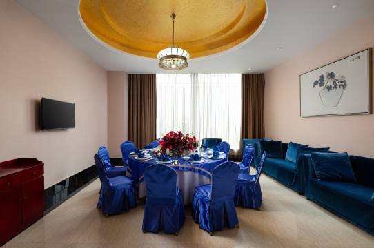 酒店拥有大的宴会厅,室内配套省内较大的60平米全彩高清LED屏,先进音响灯光设备,可招待多达1000位宾客同时用餐,可举办各式宴会、会议。另备15间豪华舒适的私人用餐包厢,提供经典粤菜,创意湘菜、特色农家土菜,是您正式商务宴请和休闲会友的好选择。