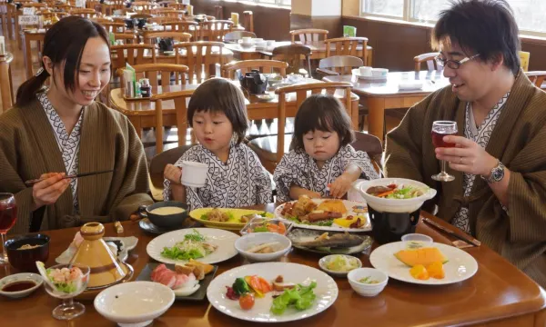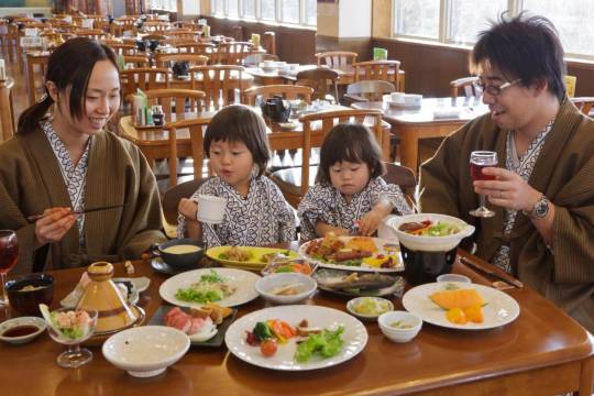 酒店在位置在山上,门口有一个很大的停车场,免费停车。对自驾游还是很友好的。雪后美景尽收眼底,泡着温泉看着外面的雪景,非常陶醉。晚餐是日式的,食物很用心很美味。晚上泡完温泉还有一个休息室,可以吃点东西喝点啤酒。惬意!