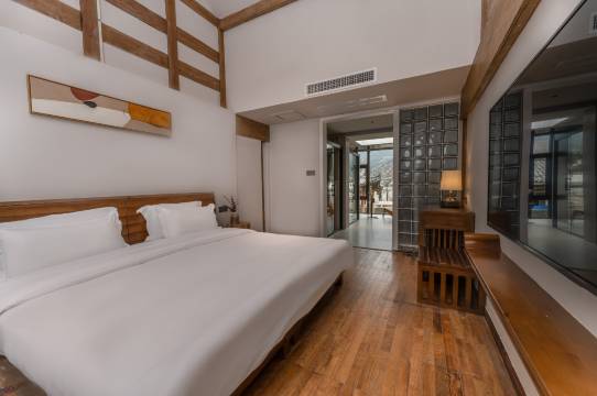 房间巧妙融汇了现代时尚元素和纳西建筑精髓,三进三出的纳西新中式风格院内您不仅可以饱览玉龙雪山之巍峨、看那繁星之璀璨。