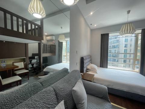 公寓位于中山公园地铁站10号出口的马路斜对面,紧临长宁来福士购物广场 ,旁边就是地标性建筑龙之梦购物中心,楼上有各种人气美食,楼下还有家乐福超市,国美电器等,附近就是中山公园,附近生活设施齐全。房间以简约的现在北欧风为主,每个房间配有独立的电信100兆宽带,24小时热水,是您出差旅行的理想选择。