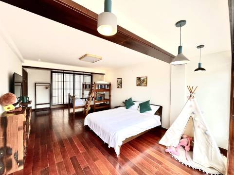 民宿装修有氛围,温馨,像自己家一样,小哥哥,帮我们拿行李到房间,借厨房给我们小孩烧辅食,榻榻米房间小孩子自己爬来爬去,我们比较放心,一次性洗漱用品很好,卫生干净!