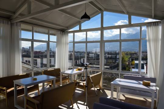 环境更是没话说,楼顶的观景台堪称宝藏——白天能把苍山的轮廓看得清清楚楚,连山顶的积雪都像撒了层糖霜;到了傍晚,夕阳把洱海染成暖金色,晚风带着水汽拂过,随手一拍都是壁纸级别的画面。