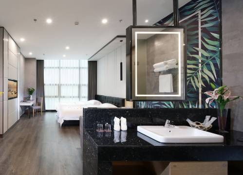 推开房门便被暖调灯光包裹,房间陈设简约却精致,床品柔软得像陷进云朵,躺下便卸去一身疲惫。卫浴干湿分离设计贴心,热水秒出且水温稳定。清晨被窗外鸟鸣唤醒,拉开窗帘就是满眼绿意。前台服务温柔耐心,入住退房全程高效。这趟短暂休憩,完全超出预期,下次来这座城市,还会选这里。