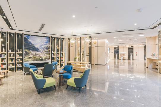 酒店大堂空间开阔明亮,布局合理。休息区沙发舒适,搭配简约茶几,还有书架增添文化氛围,无论是等待办理入住还是短暂休憩,都能感受惬意氛围。