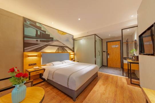 酒店有线条利落的美式轻工业风房型,也有温馨舒适充满北欧气息大床房,满足不同住客需求;房内配有高档进口床垫、淋浴、精致的床上用品,房间干净整洁,为宾客营造一个舒适、简约、朴实、静谧的差旅体验。
