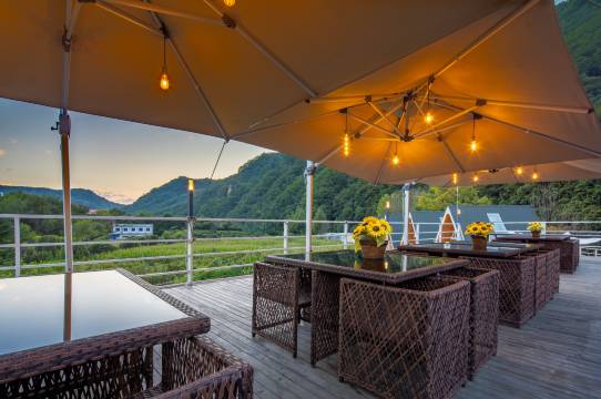 民宿部分房车设有KTV,露天温泉,儿童设施,超大露台,烧烤区,闲暇时分可以看书、喝茶、聊天、欣赏美景,到了晚上可以与朋友一起自助烧烤把酒言欢,畅所欲言,酒不醉人人自醉~