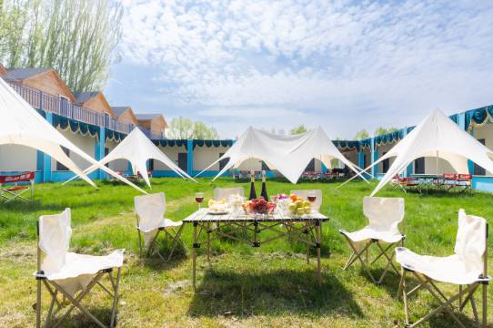 度假村四周围绕千亩果林,是集餐饮,民宿,低空飞行,采摘为一体的休闲娱乐农家小院,民宿有现代化住房及特色,是一个干净、卫生、活动丰富的特色民宿,餐饮以地方菜,烤全羊,特色烧烤,地方文化,民族歌舞餐食为特色。室内现代化KTV包厢就餐环境多重选择,果实采摘园,有樱桃,树上干杏,夏富士,力檬果子等都可以采摘,感受果园采摘的乐趣,远离城市喧嚣,既可以锻炼身体,陶冶情操,又能呼吸新鲜空气,修养身心;还可以观赏优美的田园风光,乐在其中,等待你来采摘和品尝。