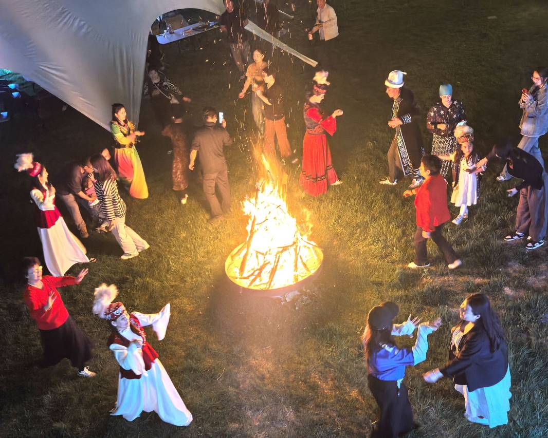 晚上有篝火舞会氛围很好。