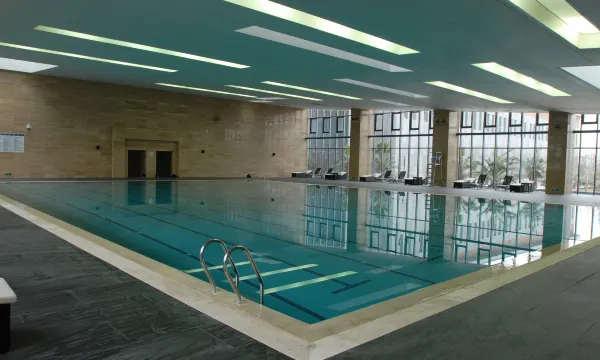 园区拥有各种运动场地,包含恒温游泳池、网球场、羽毛球场、篮球场、壁球馆、乒乓球馆、健身房以及高尔夫挥杆练习场、五人制足球场等。