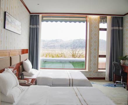 房间面积挺大的,相对比来说这个酒店性价比挺高了,隔音也不错,卫生间也很大,距离鹿苑和金祖峰景区都不远,好评。