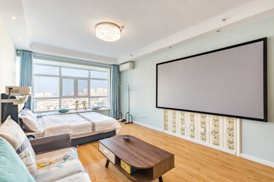 特别棒,老板娘人特别好,家里四个人,老板娘担心订的房间睡不下,免费升了房,房间很宽敞,干净卫生,投影特别赞,孩子特别喜欢,推开窗户就能看到大海,下次来烟台一定还住这里。