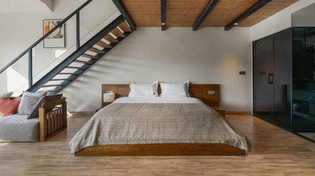 房间设计理念独特简约,软装看得出下了血本,布局很棒,所有的配套设施都用品牌,感觉老板娘很舍得花钱呀!了解了一下每个房间都是面朝正西,观景绝佳,不用开门也能见山。