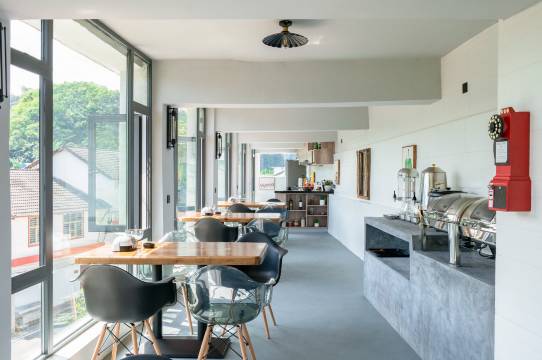 非常棒的民宿,期间整个体验也非常好。酒店设施很新+齐全,环境布置也很漂亮。房间阳台对面就是山景,风景很好。老板和店员也都很热情,从搬行李到介绍、推荐都很热心。(os闪电也很好客~)and附近买不到痱子粉,还帮我们找附近的居民要了一些,超级贴心!!下次有机会再来