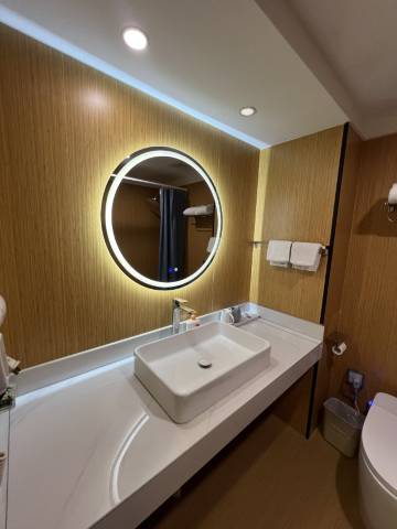 房间空间不小,还配备了智能系统小度,挺干净滴酒店位置也方便前台美女说话很温柔😊下次还来入住。