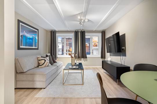 这是我住过最好的公寓!无论地点,卫生,设施都是一流。我们在两个平台订了两个公寓,因为在其中一个平台已经满了,虽然通过携程订的是面积小一点的两房公寓(另一个是有桑拿的两房公寓,面积大一点),两个公寓都很好,厨房设施充裕,床铺舒适,暖气给力,每两天打扫一次(足够的),前台是斜路下去步行5分钟的Viking酒店,所有人员都很好。公寓在市中心,去超市,餐厅,一天游活动的集合点等,全是10分钟路程,总之是超级推荐!放心订!