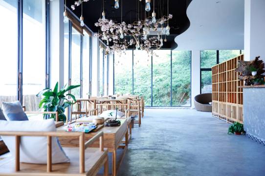 余姚湖上隐客栈座落于红色革命老镇梁弄镇,梁弄镇是全国十九个抗日根据地之一。湖上隐客栈为农房重建,房子以灰,白色为主调,显江南水乡之风貌,房间面朝浙东明珠四明湖,背靠竹林,环境优美。房间采用落地大窗,坐在房内可一览湖光山色,所有家具采用全榆木新中式定制,表面烫蜡处理。