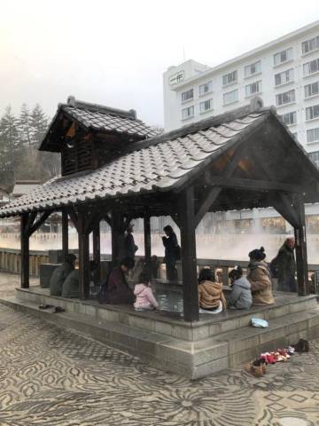 附近的公共浴场(巽乃汤)贴着告示,好像是出于疫情考虑,只对当地居民开放,游客不能使用。