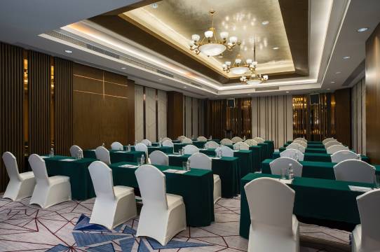 酒店在罗湖核心地段,步行几分钟就到国贸地铁站,离国贸大厦等商务楼也近,谈事出行都不用赶时间,周边商圈繁华但房间关窗后特别安静,闹中取静的环境太适合差旅人休整,大堂典雅大气,商务氛围拉满。