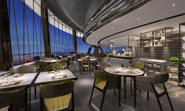 4间风格迥异的餐厅及酒廊满足宾客探索特色美食的味蕾。云景轩旋转餐厅位于酒店50层,每2小时一圈的速度让您可以360°欣赏深港两地绮丽美景,在云端尽情享用美味的同时,体验罗湖夜晚灯火与美食的交汇。位于2层的行政酒廊,为万豪旅享家会员提供快速入住和退房服务、每日早餐、下午茶等会员服务。