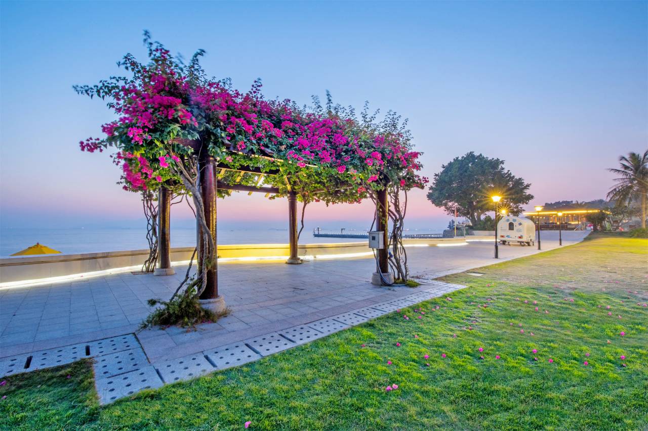 环境幽雅,位置优越,离沙滩很近,有充电桩可充电,早餐品种丰富,房间可看到海,有乒乓球室,游泳池,儿童乐园,小孩子喜欢看鱼