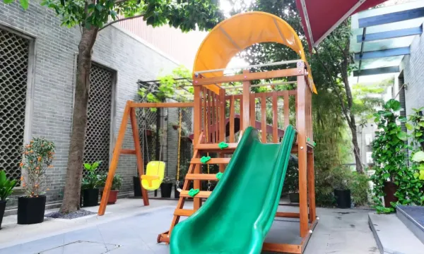我们家喜欢去平江路一带溜达,这次选了华府酒店,体验非常好。工作人员友好热情,房间宽敞,二孩家庭入住也不局促。亲子房里还有滑梯秋千,虽然我家孩子大了玩不了,但放着就很有乐趣。地理位置非常好,闹中取静,对面是羍市咖啡,步行2分钟到平江路沈万三买猪蹄鸡爪,去苏博观前街都步行可达。早餐比较简单,吐司面条都有。酒店后面还有私密性非常好的中式大包间,古色古香,可以一大家子聚餐。酒店顶层有个观景平台,俯视平江路。对了,有专门的停车场,自驾游太方便了。以后去平江路还住这家。