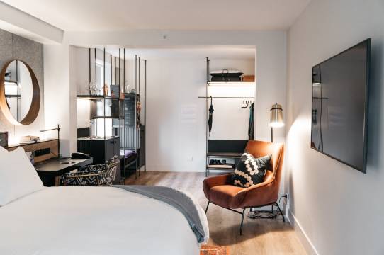 一家很棒的现代化酒店,员工乐于助人。房间虽小但紧凑,短暂停留所需的一切都有。酒店健身房很新,功能齐全。地理位置绝佳。