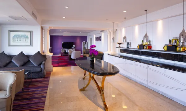 酒店二楼设有大堂吧,复古典雅的装潢和轻松愉悦的氛围。是您会见朋友或商务洽谈的理想地点,您可从菜单上挑选您爱吃的小吃,或尽情享用各式各样的现烤糕点、风味茶饮、水果鸡尾酒和香醇咖啡。大堂吧以种类丰富的下午茶和热情贴心的服务吸引宾客在此驻步、欢聚。您也不妨来此小憩片刻,静静地观赏咖啡师娴熟地摆弄各种工具,或享受浓郁香气的下午茶,慵懒悠闲的美妙时刻从大堂吧开启。