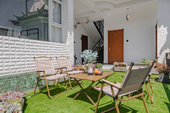 民宿布置得雅致用心,处处都透着老板的巧思与温度,每间房名都充满了禅意:“素雅”“静听”“日月同心”等等。庭中小院极具惬意,白天夜晚都别有一番风味,安静又治愈。房间干净整洁,床非常好睡,让人不想起来。房间内设施特别齐全,电器也都是极好的大牌,用着放心。
