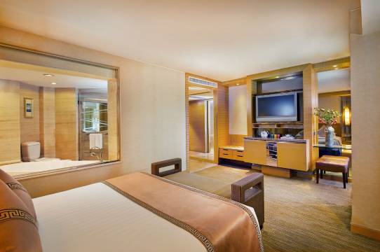 房间比图片里更惊喜,现代简约的装修风格很显质感,床品柔软得像云朵,晚上睡得特别沉,完全没被外界噪音打扰。卫浴干湿分离,热水秒出,提供的洗浴用品味道很清新。最意外的是Mini-bar的饮料每天都会免费补充,这个小细节太加分了。