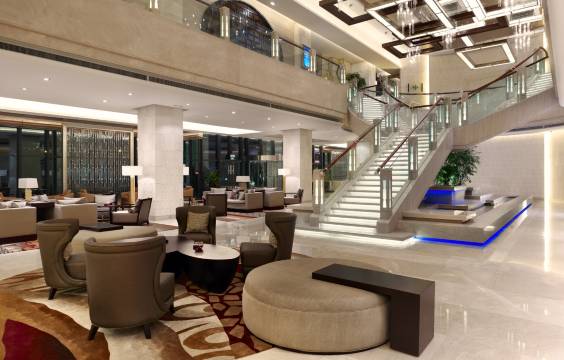 毕竟品牌连锁五星级酒店 设施相当完善 房间打扫的干干净净 周边商圈成熟 商务宴请 就餐都很方便 前台服务热情 环境很不错 给升级了商务大床房。