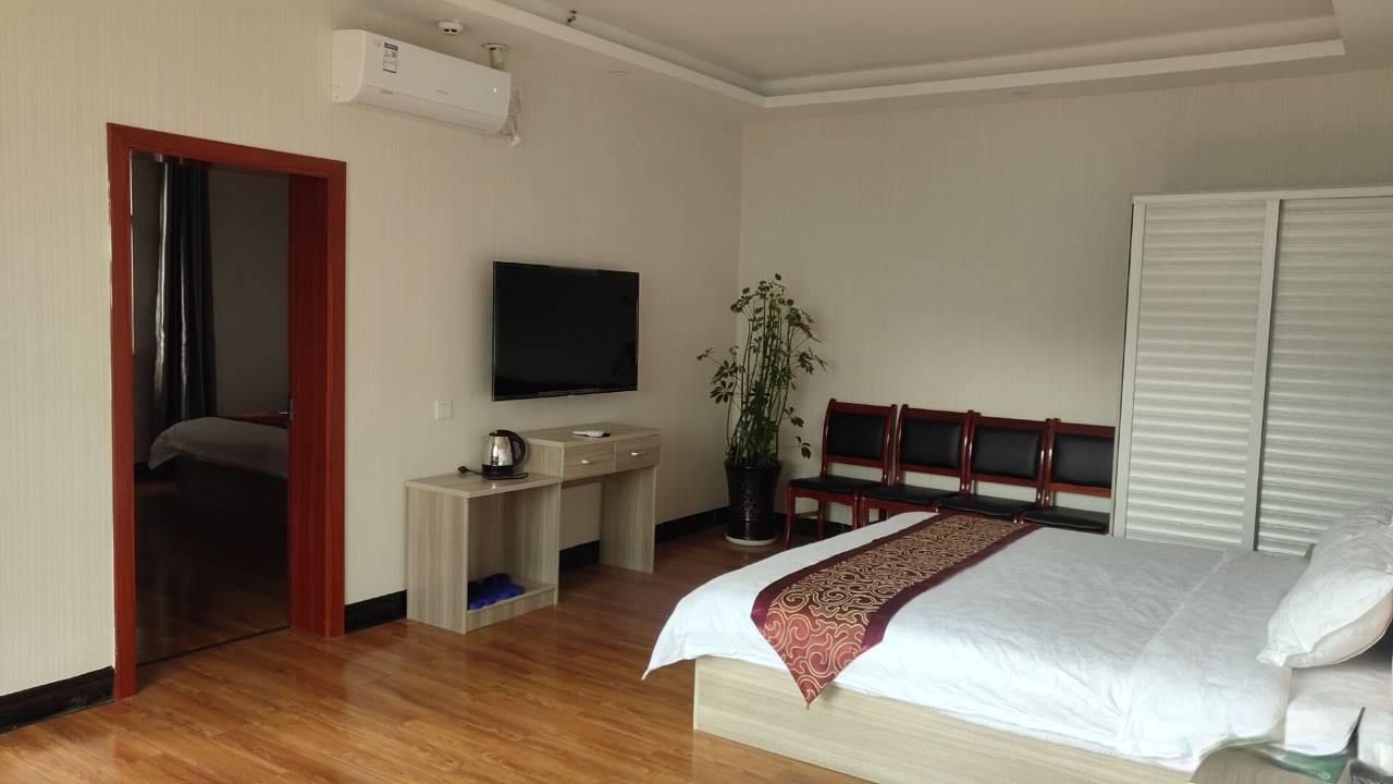 双床房很赞,适合一家几口人,1.2+1.5的床。特别是干净,装修新,价格实惠,停车方便,只是离主干道有点远,有点点偏。还好楼下旁边有卖早餐的
