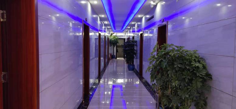 在一个建材市场边上,但不吵,我们对周围环境没什么高要求,能睡得好就行,就住得很满意,老板很热情,干净卫生,房间很宽敞,两张1.8米大床,一家四口亲子出游,很舒适。