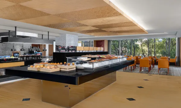酒店内部设施齐全,标准客房平均38平方米,全景落地窗,宽敞雅致,温馨舒适。二楼的全日制餐厅供应丰盛的自助早餐及各类国际美食;一楼的大堂酒吧环境优雅,提供各式茶点饮品,是会友和商务洽谈的好去处;三楼是空间灵活的大宴会厅和多功能厅,场地可满足会议/宴请/婚礼等不同宴会需求;位于五楼的室内恒温泳池,24小时开放的健身中心和香榭SPA均是宾客放松身心,体验惬意的优质场所;还有位于三十楼的行政酒廊,可为入住行政客房的客人提供以下礼遇:快速入住/退房登记、早餐、全天候茶点及欢乐时光酒水软饮供应。