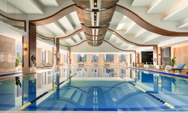 酒店内安装有霍尼韦尔PM2.5电子空气净化器,在室内给您带来优良空气体验。酒店拥有自助餐厅,长安小炒,中餐厅,大堂酒廊等四间的风格迥异,具有异国风情的餐厅为您带来多重美食享受。同时儿童乐园和室内恒温泳池及24小时健身中心给您带来多重酒店体验。
