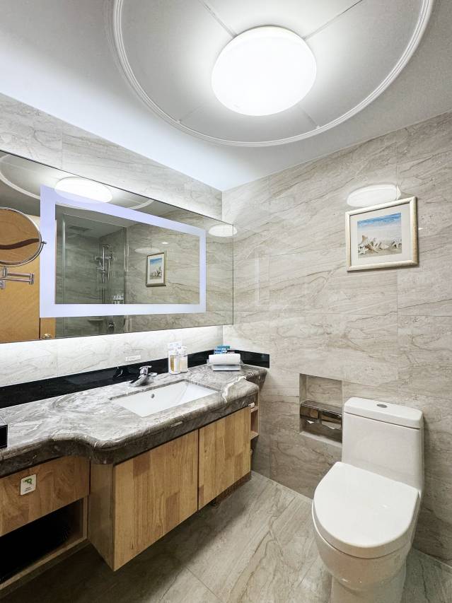 首先,环境令人印象深刻。酒店大堂宽敞明亮,设计现代典雅,一进门就感觉舒适放松。我入住的客房同样令人惊喜,空间宽敞,布局合理,采光极佳(特别喜欢那个大落地窗!),整体干净整洁到无可挑剔。床品柔软舒适,保证了优质的睡眠。无论是公共区域还是房间内部,都维护得非常好,营造出一种宁静、高品质的度假氛围。