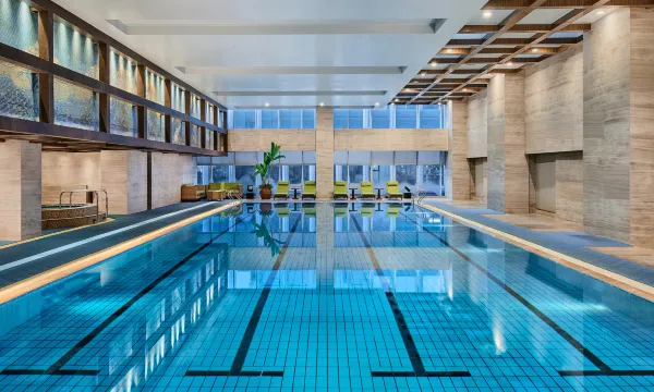 此外,客人还可至室内恒温泳池畅游,或是全景落地窗的健身中心里挥洒汗水,洁净明亮的瑜伽室内放松舒展,开启活力满满的一天。
