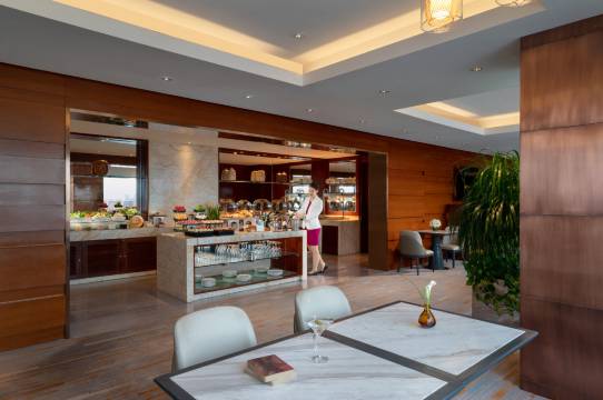 酒店(室内)会议及宴会空间达3,000平米,含1,400平米大宴会厅及13个多功能厅;拥有自然采光的宴会厅前厅展示区域挑高22米;大型物料可通过载重2吨的液压升降平台直达三层会议区域。