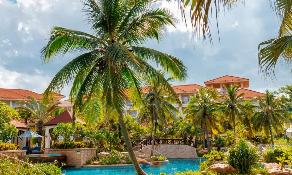 酒店位于椰林婆娑的西海岸,紧邻五源河湿地公园,远离城市喧嚣。酒店园林与沙滩相连,穿过美丽的热带花园,便可来到滨海沙滩远望壮阔海景,聆听微风海浪细语。酒店距海口市中心商业区约10分钟车程,距海南省国际会展中心约5分钟车程,临近2个国际标准高尔夫球场,毗邻cdf海口国际免税城和五源河文化体育中心,是您高效商务旅程和休闲度假舒缓身心的理想之地。