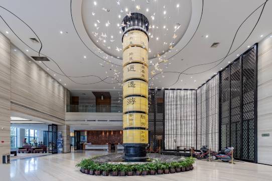 此次出行,带孩子们踏春,也了解道家的庄子文化,逛了庄子祠,愽物馆,万佛塔,入了这家文化酒店,双子楼,外观大气,门口巨大的雕塑像鱼又像分大鹏,说是镇店之宝,内部庄子文化更是处都有,环境优雅舒适,十分美美享受。前台服务人员热情的引领,办理入住的方式,对待我们的姿态,尽显不同的文化气息。房间和用品配备齐全,孩子们都很高兴,入住的很开心,离店时又送了我们一本庄子的书,我们很开心,也很喜欢。