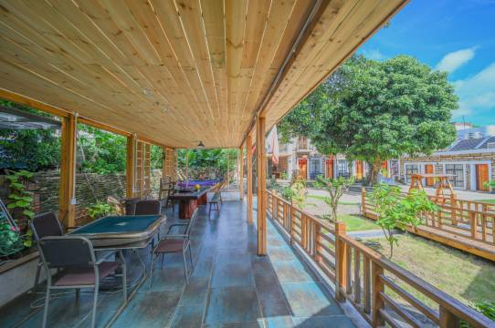 踏入这座庭院,仿佛瞬间被时光温柔包裹。院子开阔敞亮,两颗百年老树静静矗立,枝繁叶茂间藏着岁月的故事,夏日里投下大片荫凉,格外惬意。民宿堆砌的珊瑚石房屋独具风情,带着海洋的粗犷与神秘,为庭院添了份别样的野趣。还有那扇特色老物件门锁,纹路间刻满了时光的印记,轻轻触碰仿佛能听见过往的回响,透着浓浓的复古韵味。最难得的是老板,热情得像自家人,笑着递上刚摘的桂圆,跟我们聊院子里的老故事,亲切又温暖。