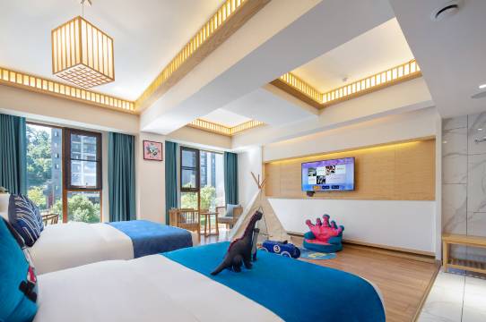 带全家自驾游,有小孩,前台免费升级亲子房,房子很大很温馨很干净,价格亲民,前台服务周到,很耐心地讲解周边景点,停车很方便,有自己的独立停车场,是自驾游出行必选酒店。