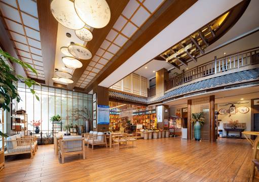 一踏入大堂就被惊艳到,原木色调搭配土家元素的装修格调十足,灯光柔和伴着淡淡香气,茶吧、汉服体验区和特色展示柜更添韵味,随手一拍都是美景。