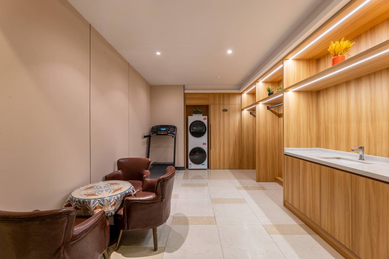 房间环境不错,格局也好,早餐好吃,有免费的洗衣机烘干机还提供免费停车,出差很方便,前台服务热情,态度也好,挺好的。