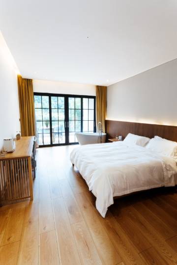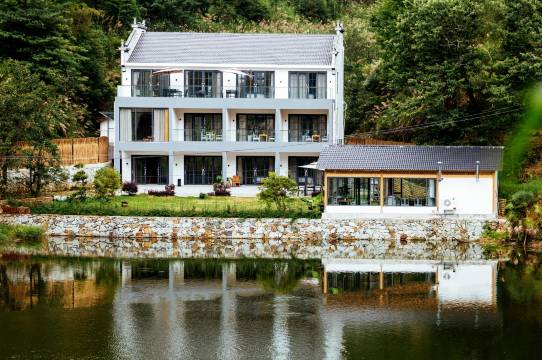 婺源涵舍美宿坐落在江湾镇石际村旁,三面环山正面为埧上水库,水清澈丰沛,如春夏水更丰满,这在婺源山乡亦少见焉。民宿带有餐厅吃饭游玩都很方便。