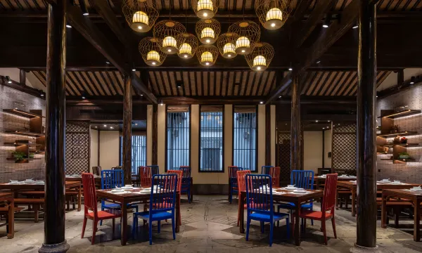 酒店拥有泳池、健身房、手作工坊,并开设老底子游戏、乌篷船环游等多样文化体验。